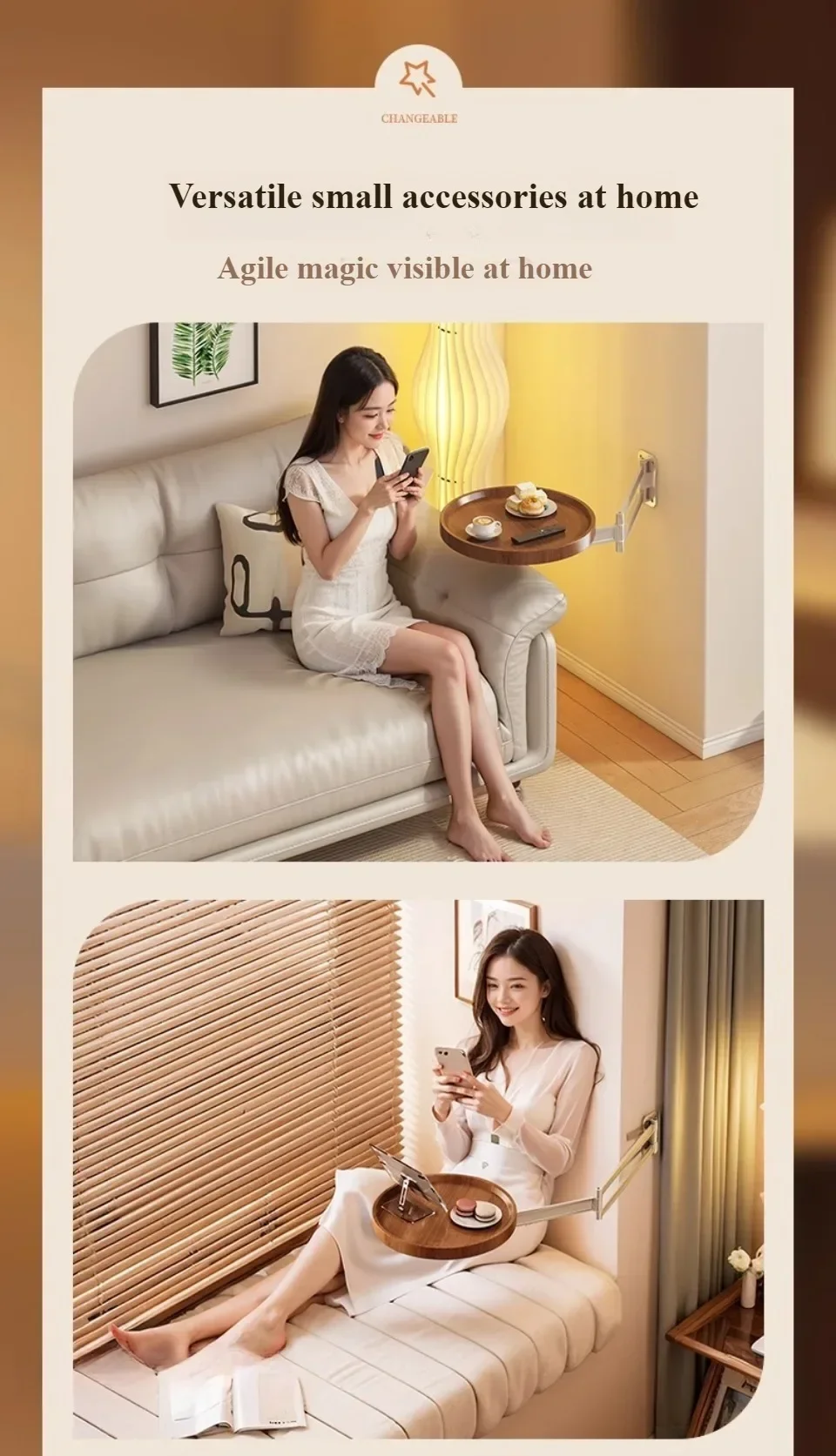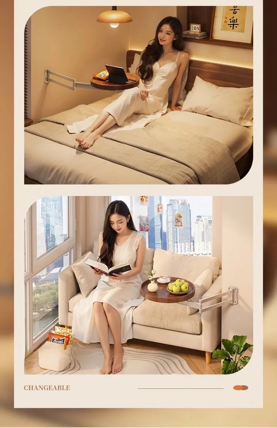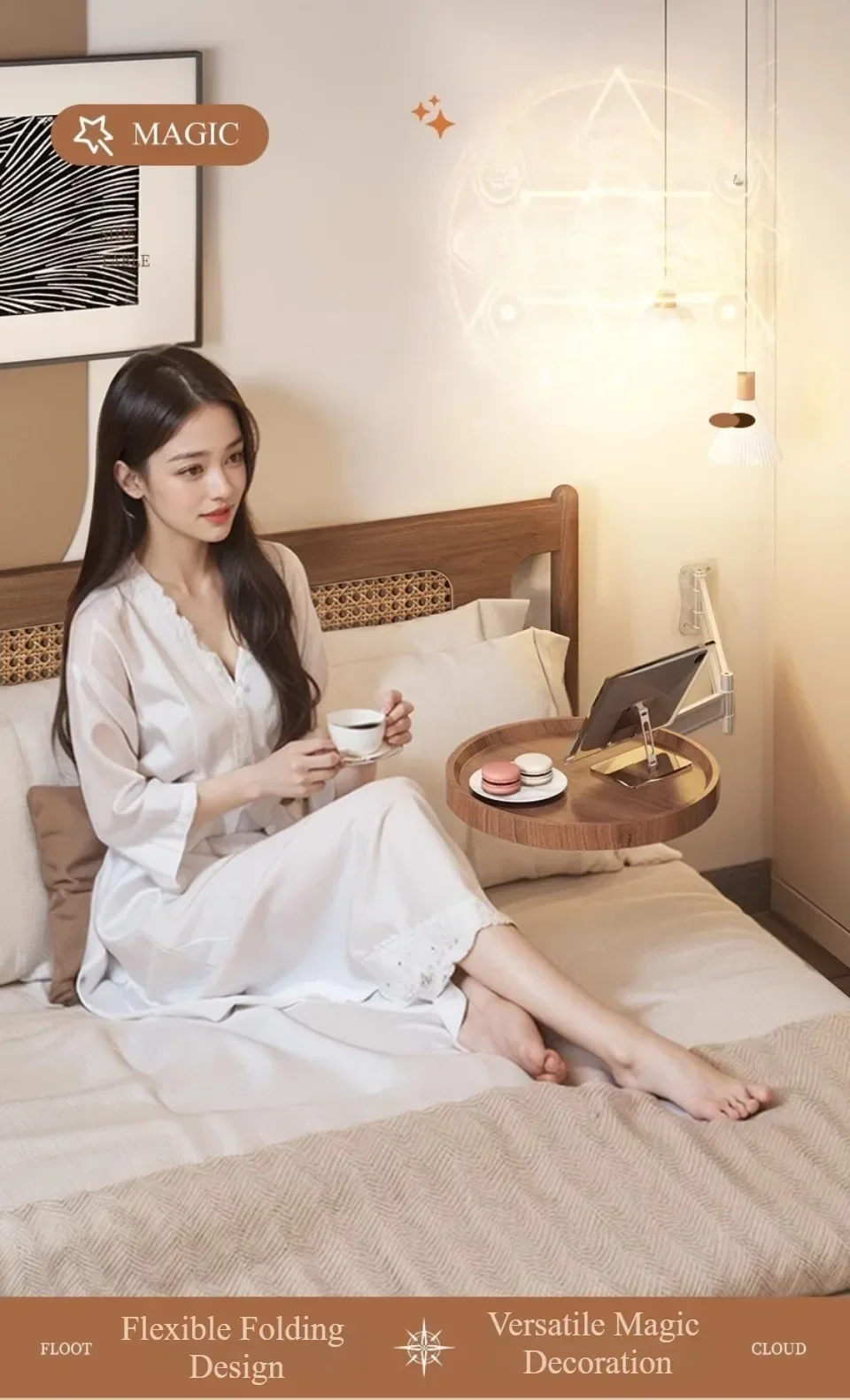 Table de chevet pliable suspendue, petite table murale créative pour la maison, le balcon ou le canapé, table d'appoint ronde pour chambre à coucher