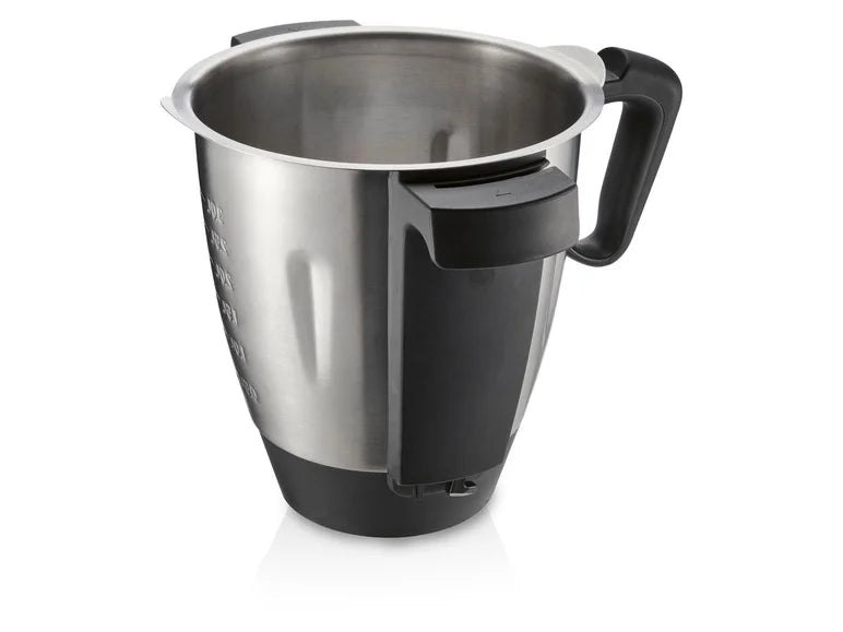 Grand bol mixeur amovible en acier inoxydable d'un volume de cuisson de 3 litres pour une capacité de 4,5 litres, y compris couvercle avec ouverture de remplissage, poignée et verre doseur